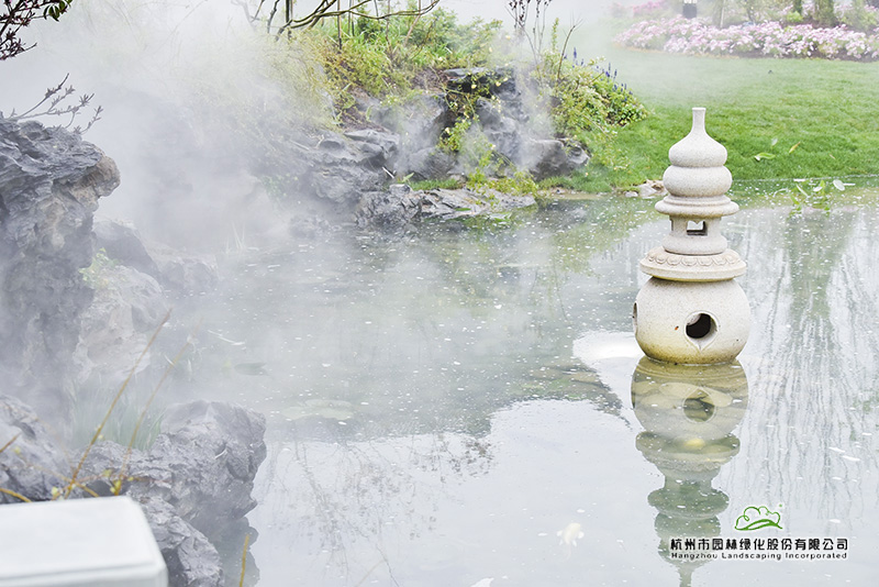 “白天温度在零度以上时,我们趁着太阳出来、温度比较高的时候施工;等太阳快下山时,温度下降很快,这时,我们就停止施工,用毛毡、草垫等将做好的铺装盖起来,再搭上保湿棚保温。因为如果保暖措施做不到位,白天做好的铺装,晚上就会冻坏,导致白天的工作功亏一篑。一些种好的精品树木,如造型黑松,我们就用很厚的棉被包裹起来,以防冻伤。”回忆起当初的施工过程,吴小成依然觉得这是施工中一段时常难熬的时期,“零下15℃的时候,我们还在施工,此时水已经全部结冰,但施工又离不开水,怎么办呢?我们买了一个加热器,把冰放到桶里,再把桶加温化水,以此来满足施工中的用水需求。”